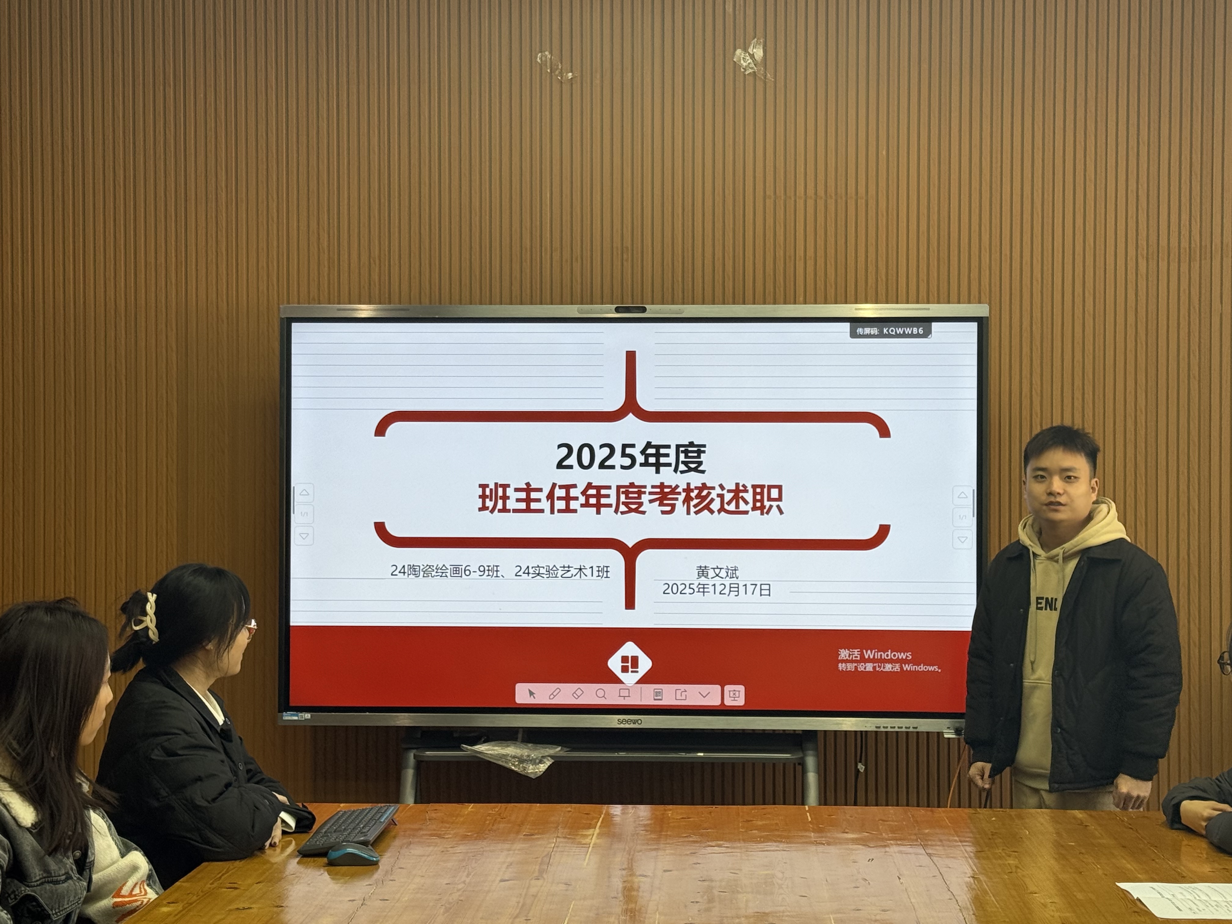 为加强辅导员和班主任队伍建设,规范辅导员和班主任工作管理,促进班级工作开展,更好落实立德树人根本任务,12月17日,景德镇陶瓷大学美术学院于美术学院324会议室举行2025年度班主任述职会议,会议由学工办主任应丛丛主持,全体辅导员和班主任参与会议并完成述职。